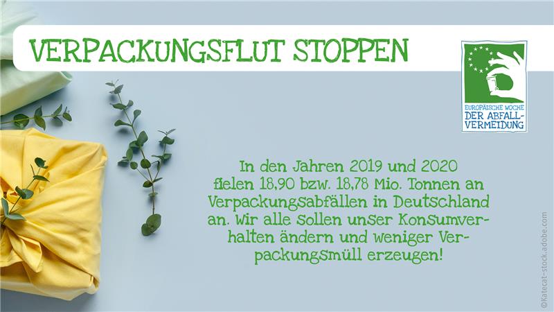 Vom 18. bis zum 26. November 2023 findet unter dem Motto „Clever verpacken – Lösungen gegen die Verpackungsflut“ die europäische Woche der Abfallvermeidung vom Verband Kommunaler Unternehmen e. V. (VKU) statt.