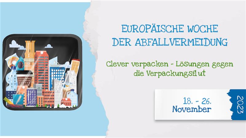 Vom 18. bis zum 26. November 2023 findet unter dem Motto „Clever verpacken – Lösungen gegen die Verpackungsflut“ die europäische Woche der Abfallvermeidung vom Verband Kommunaler Unternehmen e. V. (VKU) statt. Jetzt mehr erfahren!